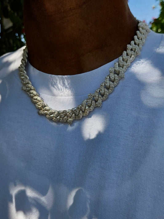 10mm Mokume Gane Cuban link. Silver-Platinum alloy/ .999fine silver