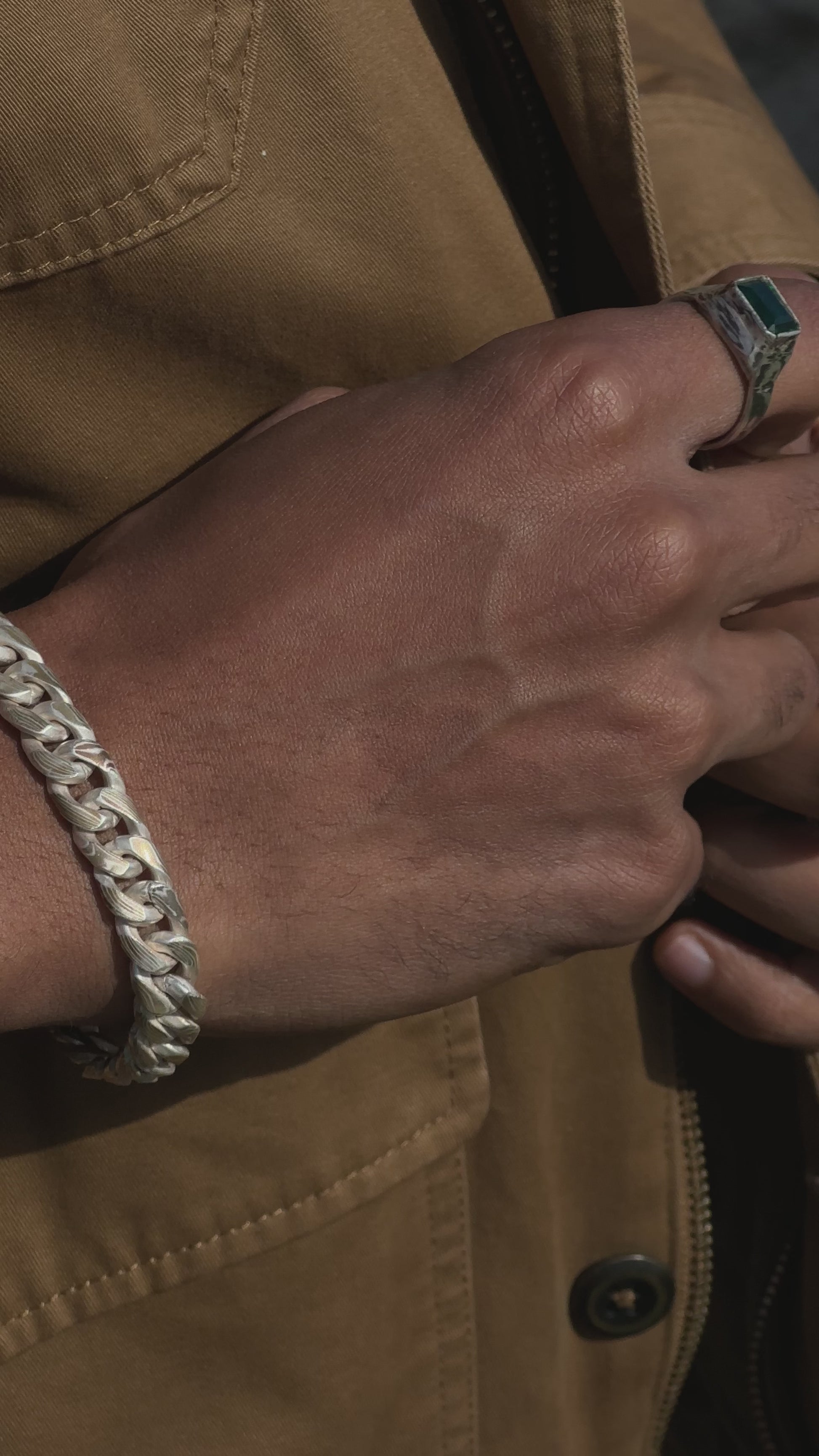 This hand made 10mm Mokume Gane Cuban is a beautiful representation of individuality. Made by hand, sheets of .999 fine silver and .800 silver are carefully stacked and fused together to become one solid billet. Through a series of hammering, twisting and rolling a unique woodgrain patter is revealed within the metal. The pattern that emerges is one of a kind and can not be replicated. This means that your Mokume Gane is unique to you and you only.
